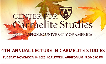 Fourth Annual Lecture of Center for Carmelite Studies Schedule for November 14 The Center for Carmelite Studies at the Catholic University of America is hosting the 4th Annual Lecture in Carmelite Studies on November 14, 2023. The lecture, entitled St. Thérèse and the Sacred Heart: History and Theology, will be given by noted theologian Sr. Mary Frohlich, RSCJ. The event will take place in Caldwell Auditorium on the campus of the university at 5PM. It will also be livestreamed. + + +