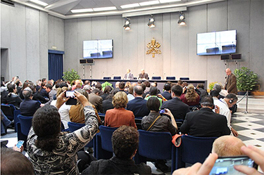 El Papa habló del periodismo como una vocación. Un periodista "elige tocar con la mano las heridas de la sociedad y del mundo" para sacarlas a la luz. Dijo a los periodistas que no "ocultaran la realidad, ni siquiera sus miserias", y que, aunque no debían restar importancia a las tensiones en la Iglesia, tampoco debían hacer "clamores innecesarios".