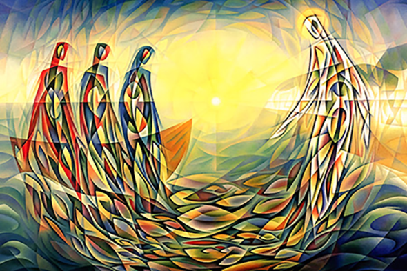 Il Vangelo di oggi racconta la terza apparizione di Gesù ai discepoli dopo la sua risurrezione. In un primo momento non lo riconoscono; poi c'è un enorme bottino di pesce seguito da un pasto; poi, nella versione lunga di questo Vangelo, l'incarico di Pietro di guidare il gregge nell'amore.