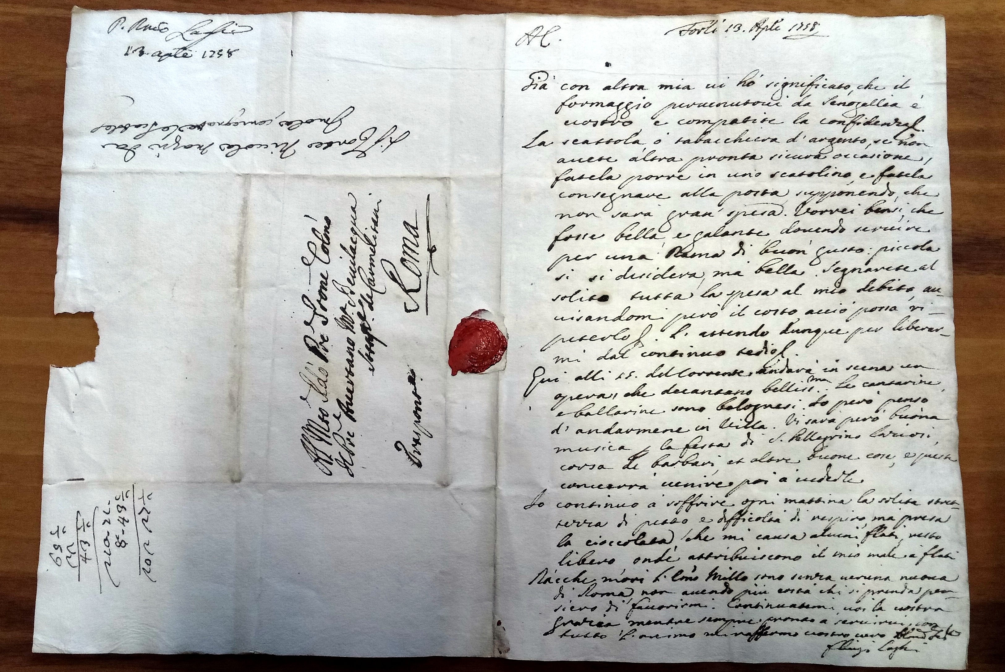 Padre Laghi aveva una gran provvista di questo portentoso rimedio, come si legge in un’altra sua lettera: «Per la cioccolata ci è tempo sin che farete la nostra, perché ne tengo ancora per sei e più mesi» (7 settembre 1758).