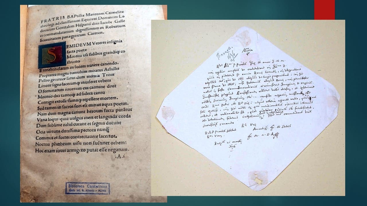 In particolare, saranno esposti al pubblico e presentati alcuni manoscritti e documenti medievali più significativi per la storia dell’Ordine e alcuni incunaboli e cinquecentine facenti parte del fondo antico della Biblioteca, legati a personalità di spicco dei Carmelitani.