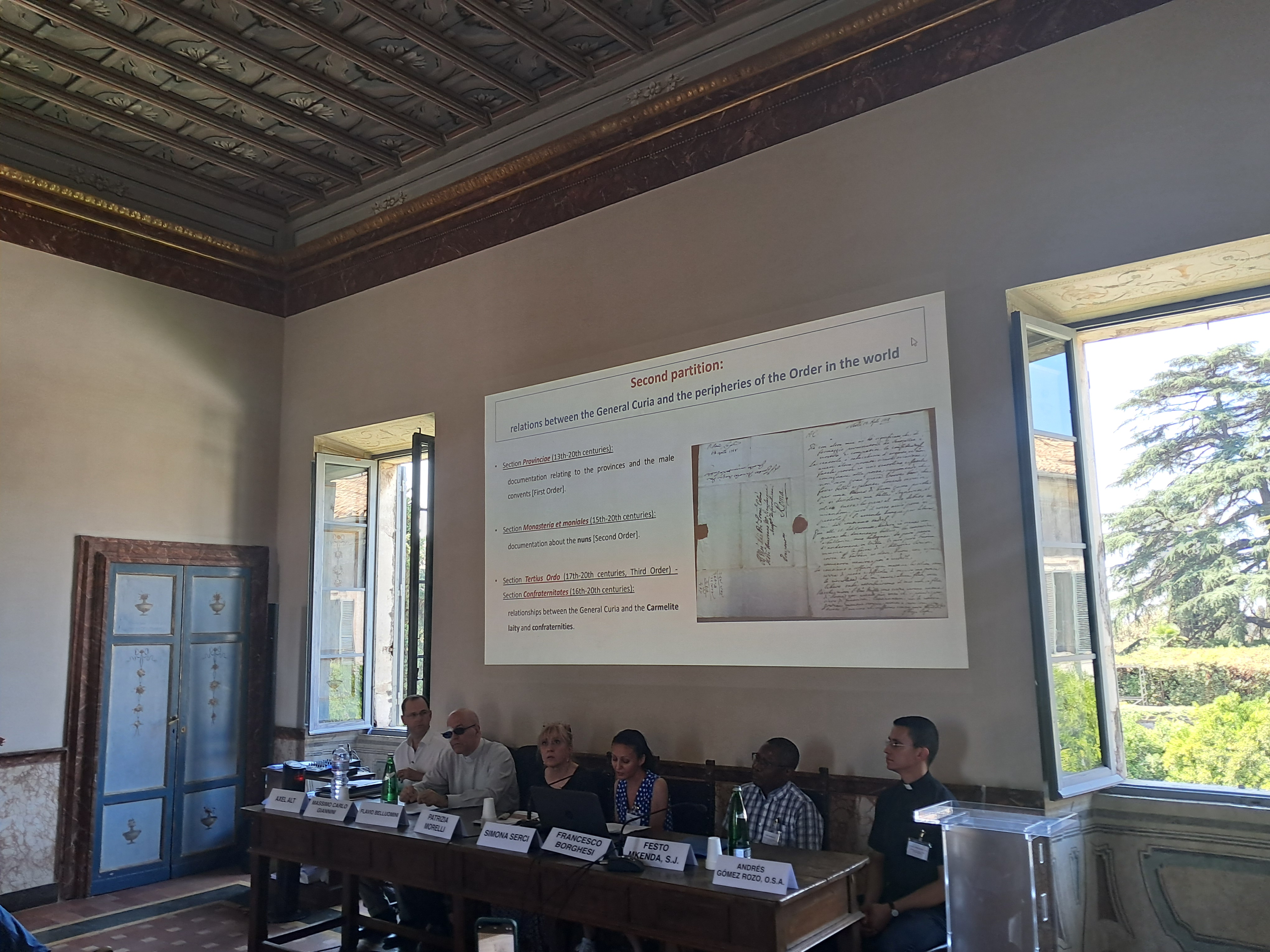 Erano presenti: Simona Serci per l’Archivio Generale dell’Ordine Carmelitano; Flavio Belluomini per l’Archivio Storico ‘de Propaganda Fide’; Axel Alt per l’Archivio Generale dei Carmelitani Scalzi; Festo Mkenda, S.J. per l’Archivum Romanun Societatis Iesu; Patrizia Morelli per l’Archivio Ordine Frati Minori Cappuccini; Andrés Gómez Rozo, O.S.A. per l’Archivio generale degli Agostiniani.